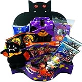 We deliver Halloween fun for your little goblins, even when you're miles away. Open the lid to this fantastic detailed bat gift box to discover all the yummy treats tucked inside Spooky Snickerdoodle Cookies, Cob Web Cotton Candy, Happy Halloween Butter Toffee Popcorn, Witches Bite Size Pretzel Twists, Halloween Candy Tarts, and an assortment of Gummi Body Parts, treat bag of Fun Size Halloween Candy, an assortment of Bat Rings and even a 4" plush keepsake Bat to make Halloween extra fun. After the goodies are gone, this great gift box can be used for a fantastic Halloween decoration for years to come. Each gift is hand crafted with attention to detail and includes a personalized gift card message from you. Manufactured by Art of Appreciation Gift Baskets.