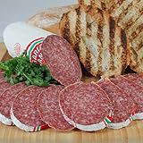 A mild salami, made of finely ground pork in a white casing, with a deep eggplant color. A nice smooth flavor makes this pork sausage a staff favorite and our best-selling salami. With a lovely smoky taste, try this on a sandwich, you won't be disappointe
